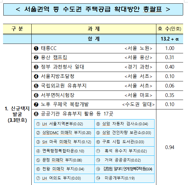 2. 13만+α는 금번 대책 마련시 신규 추가 발굴된 공급물량