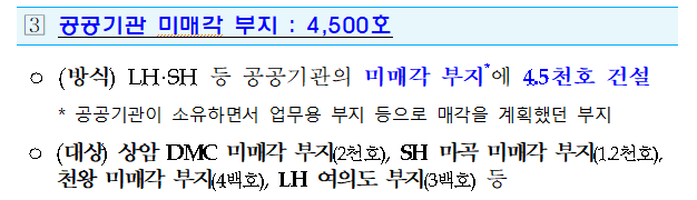 ③ 상암 DMC 미매각 부지(2천호), 서부면허시험장 부지(3.5천호) 등 서울지역 내 가용한 토지도 주거공간으로 최대한 활용할 계획입니다.