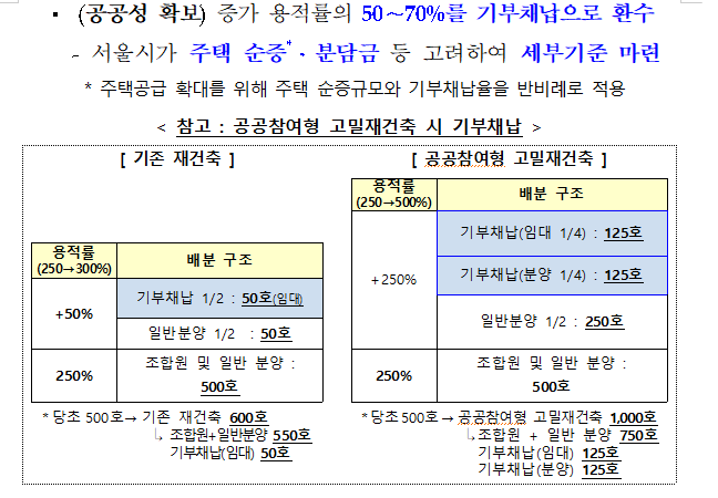 * 장기공공임대: 기부채납 주택의 최소 50% 이상, 공공분양: 최대 50% 이하 적용