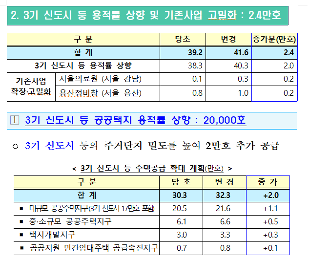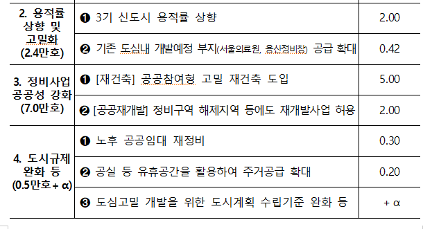 둘째, 3기 신도시 등에 대한 용적률 상향과기존사업 고밀화를 통해 2.4만호의 이상의 주택을 추가로 확보합니다.