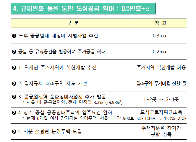 <주택공급대책 공급방법 - 4번 도시규제 완화 통한 공급능력 확충>